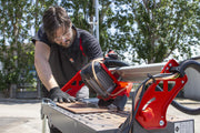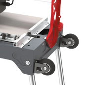 Las cortadoras eléctricas DU-EVO de RUBI también disponen de un sistema de patas plegables que, además de aportar una mayor estabilidad a la herramienta, ofrece al profesional una altura de trabajo de 90 cm. Las ruedas y asa incorporadas en el chasis facilitan enormemente la manipulación y transporte de los modelos de la gama DU-EVO.