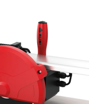 El cabezal de las cortadoras eléctricas DU-EVO de RUBI se desliza sobre 4 rodamientos, y es abatible a 45º para la realización de cortes a inglete y está equipado con una mango bi-material para dar al usuario una mayor ergonomía y confort.