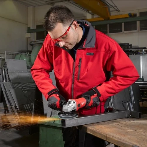 El cabezal metálico liso y compacto mejora la visibilidad de la pieza de trabajo y permite trabajo en zonas limitadas; las entradas de aire protegidas favorecen la refrigeración y reducen el desgaste interno. Viene con empuñadura lateral, protector de seguridad, tuerca y llave, listo para usar en tareas de corte, pulido ligero, desbarbado y uso general en obra.